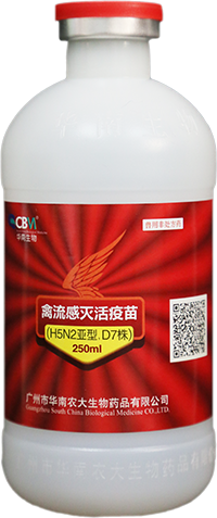 [Composition]The product contains inactivated avian influenza virus A / Duck / Guangdong/D7/2007(H5N2)(Strain D7), after inactivation, the potency of chick embryo hemagglutination (HA)is ≥1:256