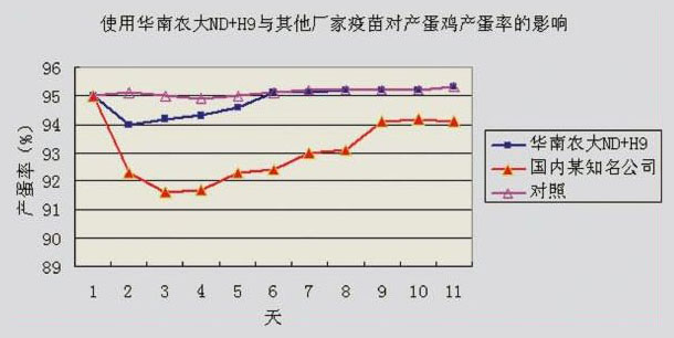 某蛋雞場注射華南農大ND+H9(精品)油苗與其他廠家疫苗對產蛋率的影響(品種:海蘭褐)