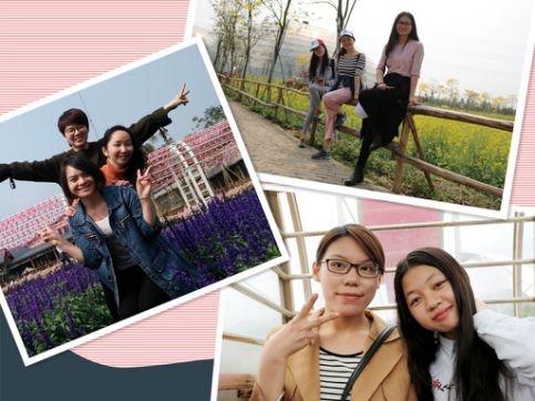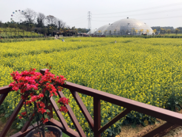 歷經兩小時車程,我們于十點抵達第一站“佛山高明區盈香生態園”,進入園區,映入眼簾的是金燦燦、一望無際的油菜花,還有競相開放各色花兒,瞬間吸引了眾女神的目光,紛紛迫不及待的掏出手機相機,與花兒親密合影。