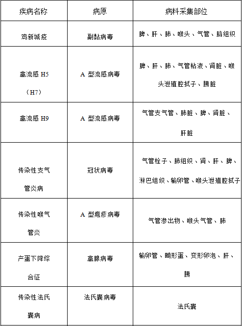 對于不同的疾病應采集不同的部位,不可盲目采集。列表中病料采集部位在前的表示發(fā)病時含毒量較高排位較前,采集病料應注意。